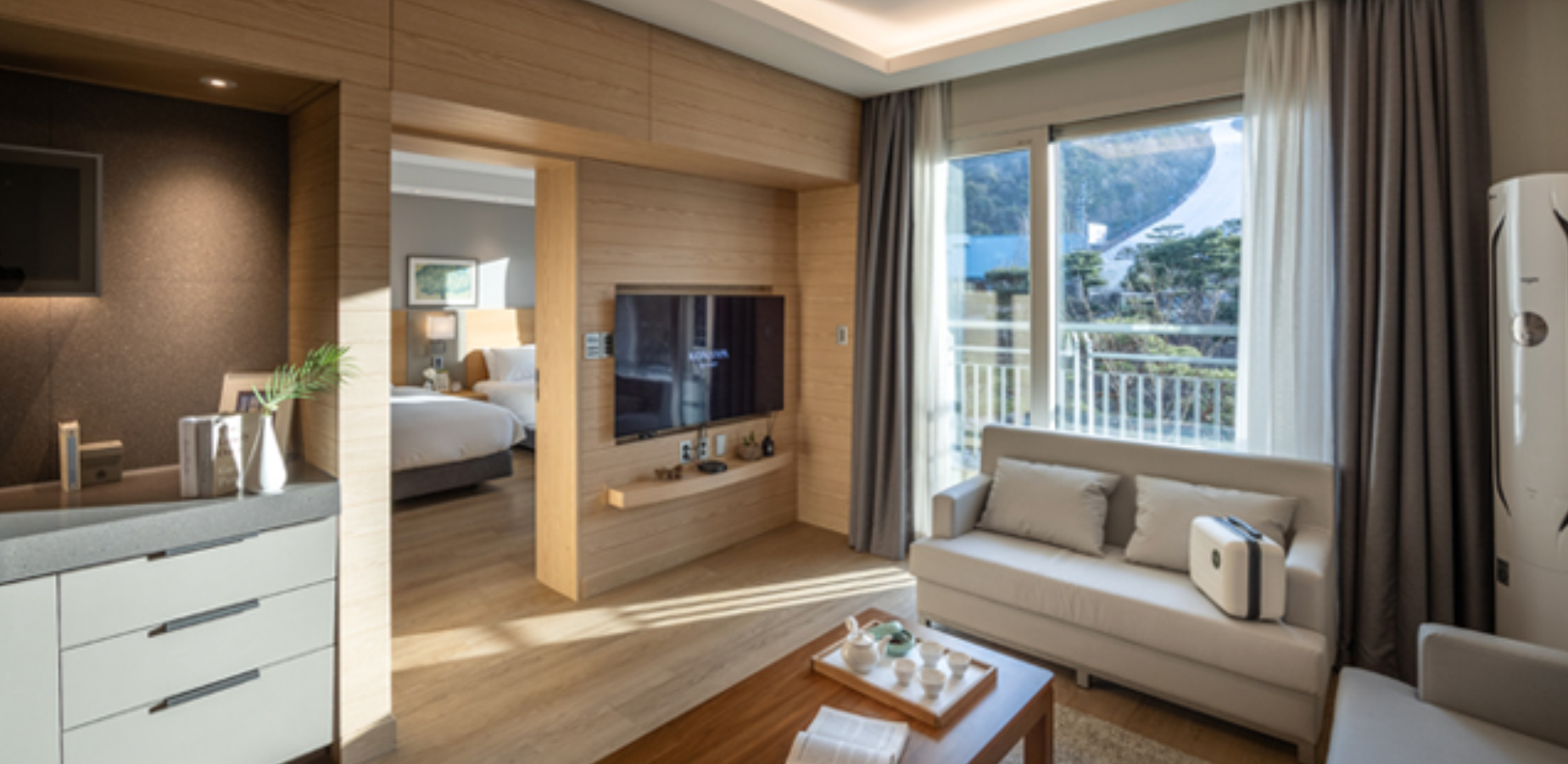 | 디럭스 (Deluxe) | 침대 + 온돌 2룸형 | 4인 | 약 180,000원~ | 약 230,000원~ | 가족 단위 추천 |