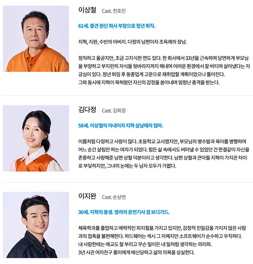 가족 멜로와 로맨틱 코미디 요소를 결합한 작품으로, 방송 초반부터 다양한 세대가 공감할 수 있는 현실적인 이야기와 묵직한 정서를 담아내며 주목받고 있습니다.